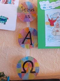 Onze meisjes zijn nu 3 en 5. s'Middags na het eten lezen we op een interactieve wijze uit de gewone Bijbel het gedeelte over de Naam die we die dag behandelen. Daarna, tijdens de rusttijd maken onze kinderen (een gedeelte van) het werkje over de Naam van die dag. - Onze kinderen hebben een siësta waarbij ze geen interactie hebben met anderen, maar wel zelfstandig bezig zijn van 1 tot half 3. - Na de rusttijd maken we het samen af. En s'avonds, als papa thuis is, vertellen ze onder het eten wat ze geleerd hebben en zoekt papa het bijpassende verhaal op in de kinderbijbel.