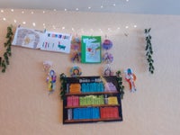 Hierboven zie je de lijn met verschillende werkjes van de kinderen.