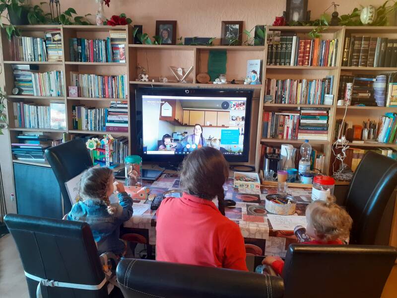 Hierboven hielden we de kinderbijbelstudie online, toen we door een lockdown in maart 2020 niet bij elkaar mochten komen. Voor de kinderen geen verhindering om te genieten van de prachtige Bijbelstudie.